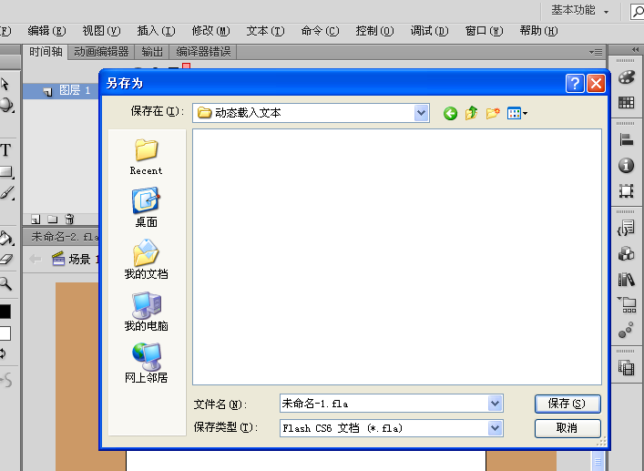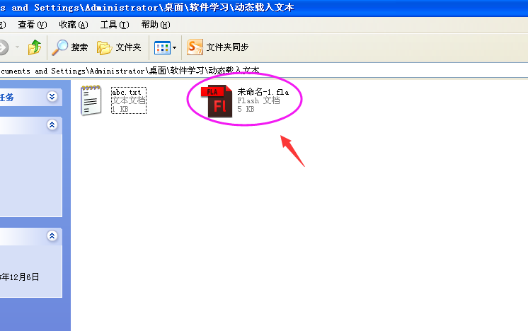 8、保存文档后,返回flash,将此文件保存在与abc.txt文档相同的文件夹下,如图所示: