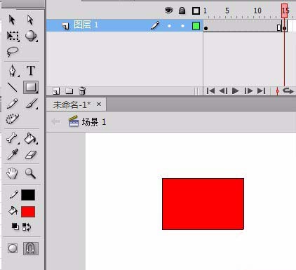 2、使用矩形工具(快捷键R),在舞台上绘制一个长方形