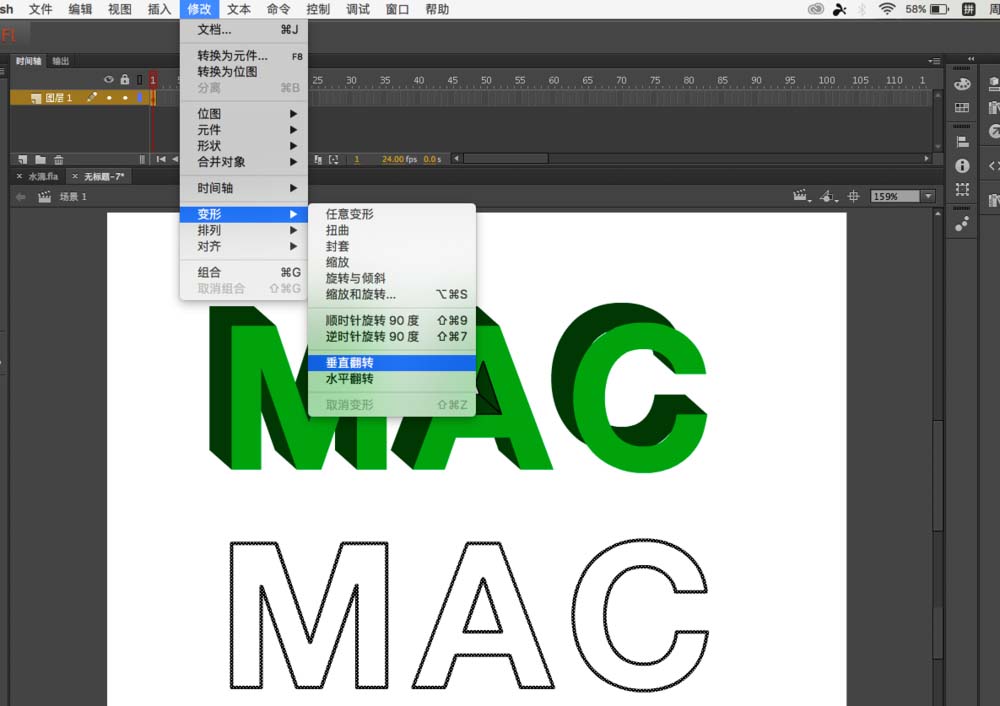 11、我们再来看下面的倒影绘制,先选中字母,然后垂直翻转,实现倒影的效果