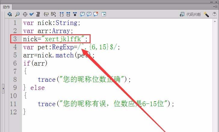 flash中输入的昵称有一定位数的要求,该怎么判断输入的昵称位数是否正确呢?下面我们就来看看详细的教程。