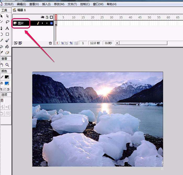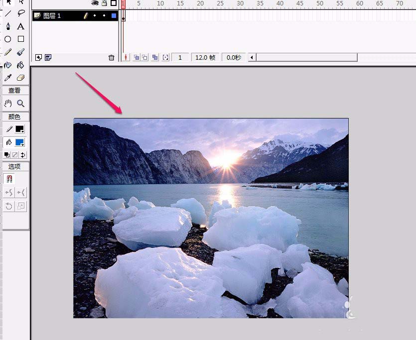 2、我们在舞台上导入一张图片。