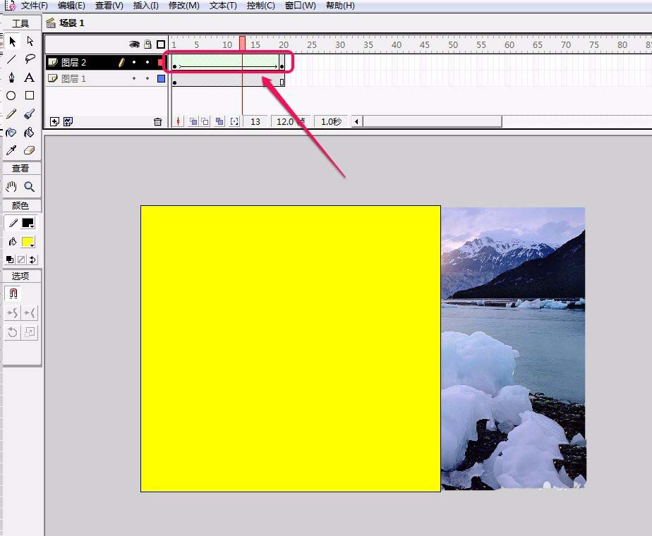 8、为“矩形遮蔽”图层中的矩形制作一个图形补间动画。