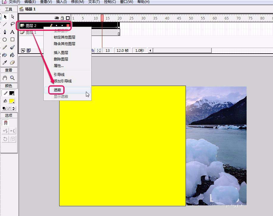 flash遮蔽功能经常使用,今天我们就来看看flash使用遮蔽实现图片逐渐显现的教程。
