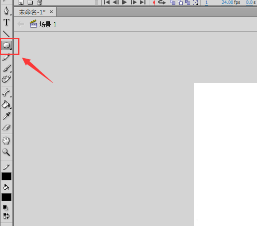 1、首先我们将flash这款软件打开然后在工具箱内找到椭圆形工具,如图所示: