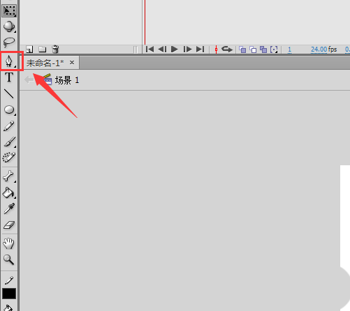 2、打开flash之后我们在工具箱内找到钢笔工具,如图所示:
