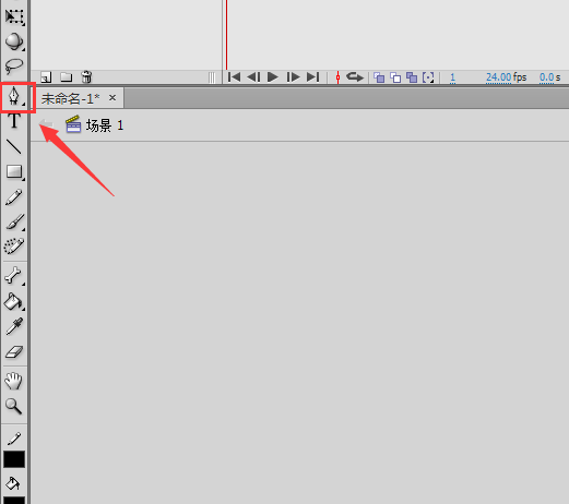 2、打开flash之后在工具箱内找到钢笔工具,如图所示: