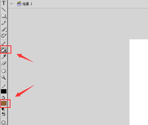 7、再在工具箱内找到颜料桶工具,并设置填充色为棕色,如图所示: