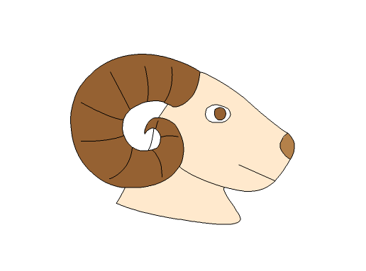 8、使用颜料桶工具然后依次在羊的头部上填充上颜色,最后的羊头我们就绘制好了,