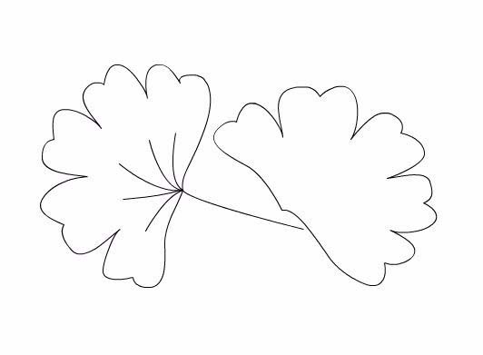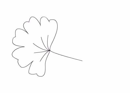 3、在叶子上面画出银杏的叶脉纹理,然后在下面再画出银杏的叶柄,如图所示: