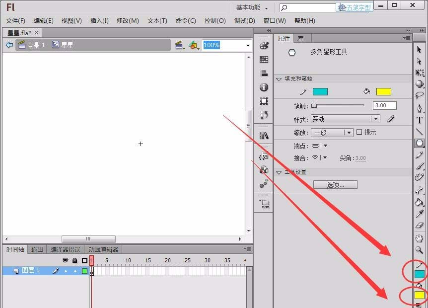 5、设置星星的填充色和笔触颜色,如下图所示。