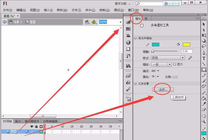 4、元件窗口中,在矩形工具上按住鼠标左键不放,选择多角星形工具。