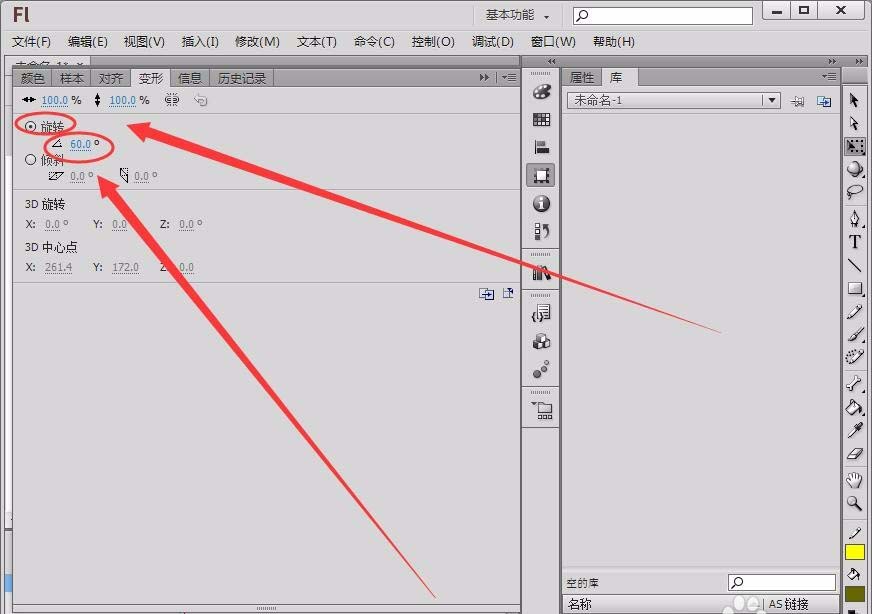 flash变形工具可以退图形进行简单的旋转和变形,该怎么使用变形工具呢?下面我们就来看看详细的教程。