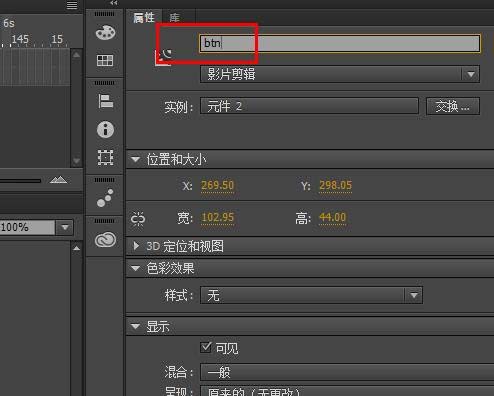 5、制作一个按钮,设置实例名为mc