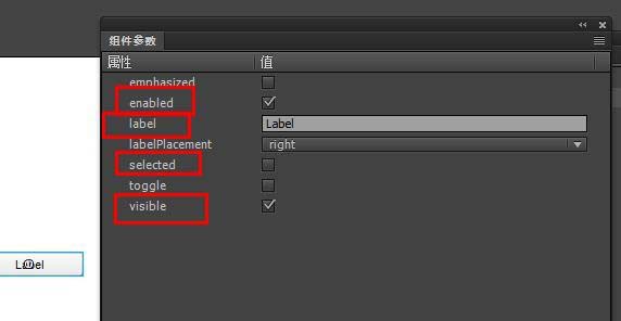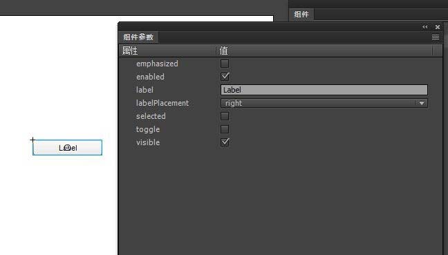 5、默认按钮上的字是Label。选择这个按钮,在属性面板中点击显示参数,打开参数面板。