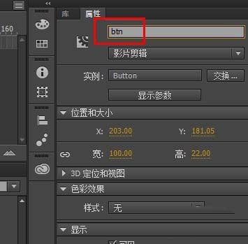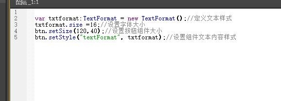 8、可以看到字体有些小,需要使用组件外观设置代码进行修改。设置按钮的实例名为btn