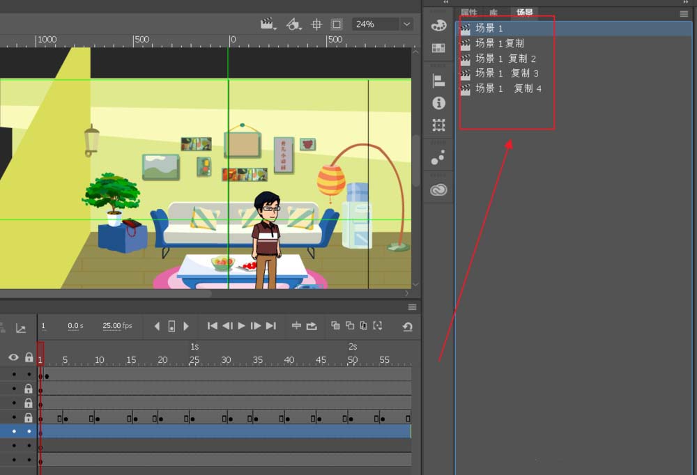 1、我准备了5个场景,我们一次性导出。