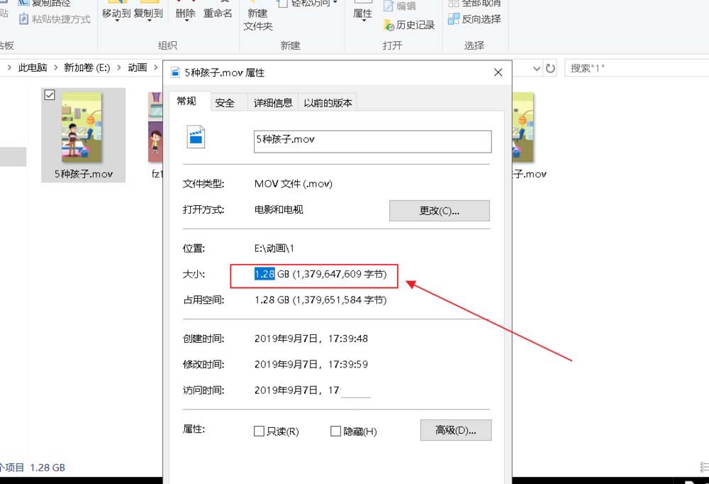 5、5个简单的场景导出后,体积大小在1.28G。画重点:这样导出来的动画是质量最好的。