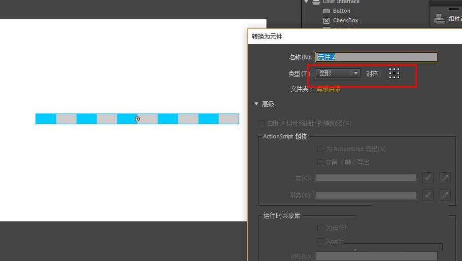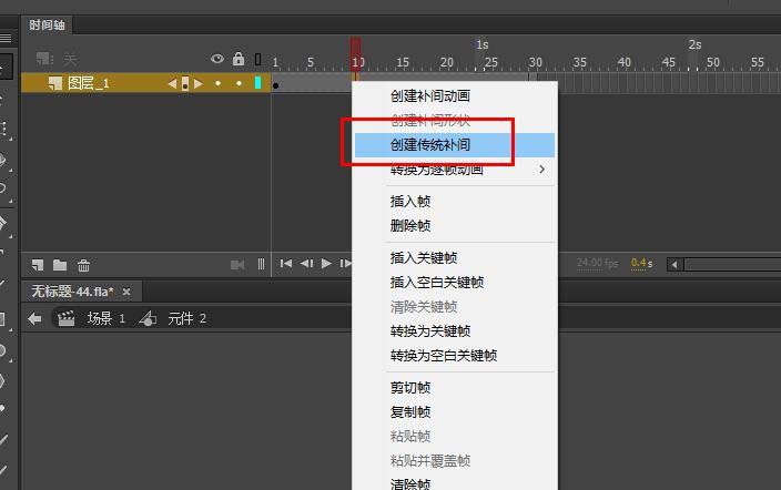 7、双击进入编辑状态,制作补间动画,在第30帧,将元件向右移动80像素。然后创建补间动画。