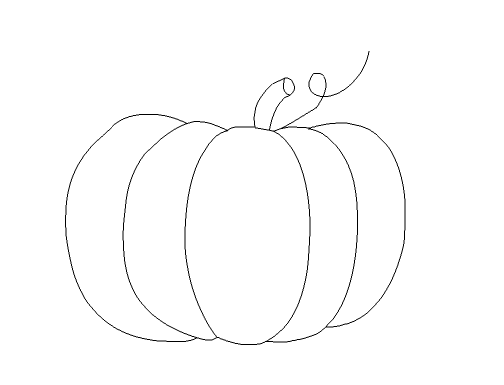 4、再在南瓜的果实体上面画出纹理线,如图所示: