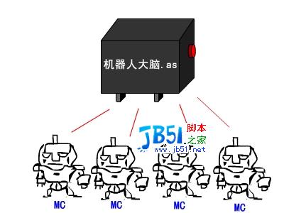 隔壁阿三写了个类“机器人控制.as”,里面写了若干行的代码,包括“移动、跳跃”两个个功能。