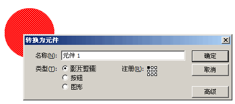 好现在这里回想一下flash中怎么做一个影片剪辑? 一个最简单的例子,在舞台上画一个圆形,选中圆形按“F8”,选择影片剪辑,确定。 就这么简单。