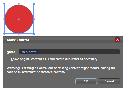 在舞台上画圆,调整下属性填充颜色。右键点选“make a control”。