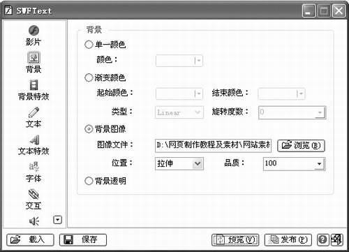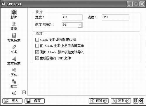 第二步:启动SWFText,在“影片”页中,设置Flash相关参数(图1)。