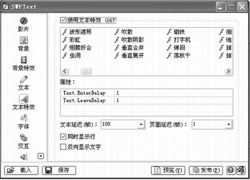 注意:由于此版本的SWFText对文本都是统一设置的,所以不管你输入的文本有多少,它都显示一种文字效果。