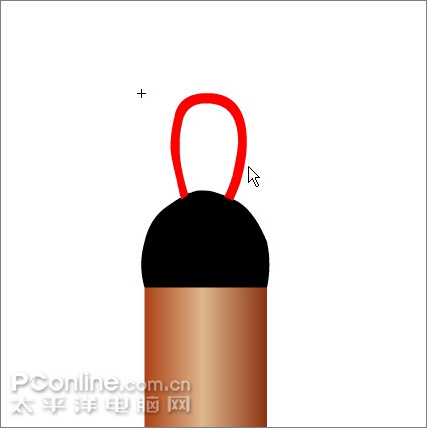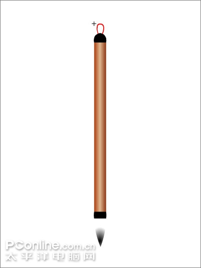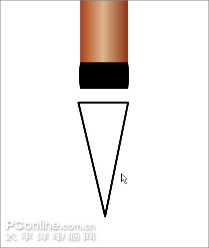 17、用直线工具在毛笔的下端画出如下三角形。