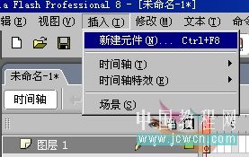 B、回到场景1。插入--新建元件,名:图2。类型:影片剪辑。把图片图2拖入舞台,居中对齐。