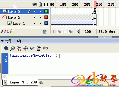 选择图层3的第一帧,在此我们开始编写代码控制3个动画的飘落方法。具体代码如下: