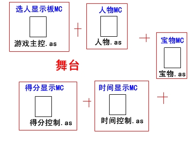 上节统计过的,游戏一共就那么几个MC,每人把自己对应的小蜜绑好合成一体,在舞台上一合成,就是个完整的能运作的游戏了\