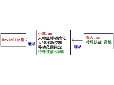 直接写了“小李.as”类,然后让“鸣人.as”类继承小李类,正文里只需要把特殊技能方法重写遍就OK了。