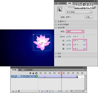 本例思路:导入莲花素材,然后为其制作闪烁动画