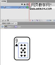 (4)新建一个影片剪辑,命名为“Card” ,命名元件类名也为“Card”,如图3-所示。将上面步骤中创建的扑克牌“9”的正反面分别放置于第1、2帧处正中心位置,如下图15-4所示。