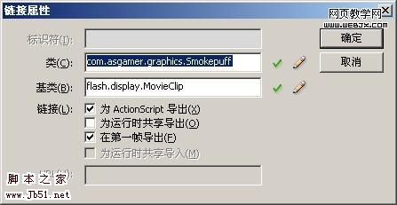 之后我们导入到FLASH中来,然后转变为影片剪辑原件,命名为smokepuff。之后我们打开库,然后右击该元件,设置链接。