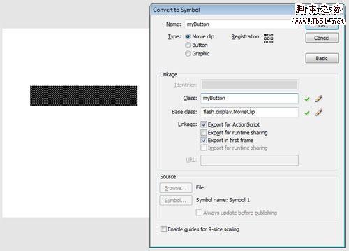 3、用矩形工具绘制一个黑色的矩形,转换为MC影片剪辑,打开属性窗口。