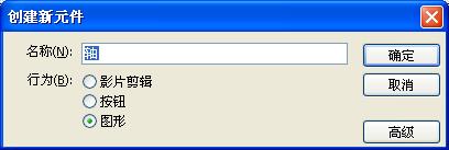 点击插入菜单—选择“新建元件”,在弹出的对话框上名称:填上“轴”,行为:选择“图形”然后确定,