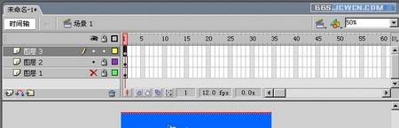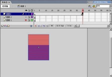 13、点对齐面版上的底对齐,使元件3 的底和舞台底对齐,在图层3 的40帧插入关键帧,创建补间动画。
