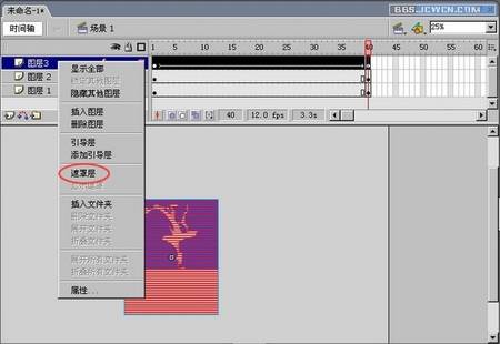 15、右键点图层3 --遮罩层,把图层3 转为遮罩层,图层2 为被遮罩层。