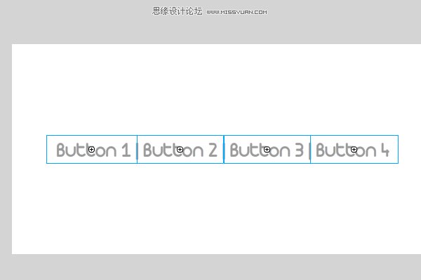 第四步:添加更多的按钮复制你的无形的按钮,并将其粘贴到其它三个按钮中,并分别将其实例名称命为button2,button3,button4″使用任意变形工具将它们放大或缩小,使它们正好在菜单条的外框,且每个之间没有间隔。