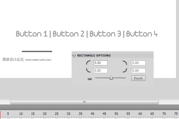 第五步:画条栏(bar)还是选择矩形工具,将矩形边角半径设为5pixels并画一个高为4pixels,宽和第一个按钮差不多的矩形。