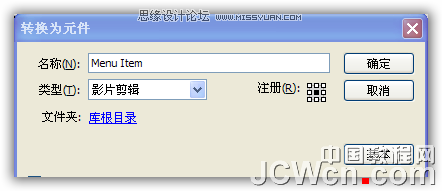 3、将长方形转换成名为 Menu Item 的影片剪辑。设定注册点为中心。图2: