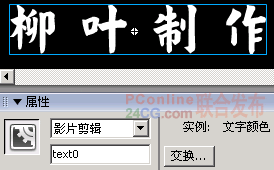 9.点选“场景 1”中的“文字影片”元件,给它起个实例名称“text0”。如图6所示。