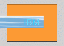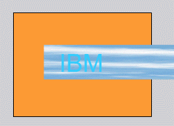 6.回到cloud图层,选中此图层的第一关键帧,然后从图库中将元件cloud拖进舞台,使其覆盖住前面输入的文字"IBM",并使元件cloud的右側和文字的右側相对齐,如图3所示: