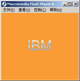 4.回到主场景中,将影片默认的图层Layer1重命名为Cloud,并在其上插入一个新图层,命名为Word,选中图层Word的第一关键帧,然后从工具箱中选取文本工具,在舞台的中间位置输入文本"IBM",这里的文本可以根据你的实际需要来设置,然后在属性面板中设置相应的字体和文字字号,设置完毕后主场景如图2所示: