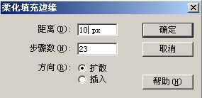 5.选择菜单“修改/形状/柔化填充边缘”,再按照如图所示的参数设“置柔化填充边缘”对话框,进行如图5所示,点击“确定”按钮,关闭对话框。