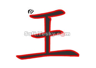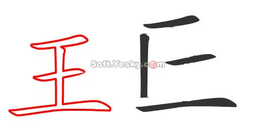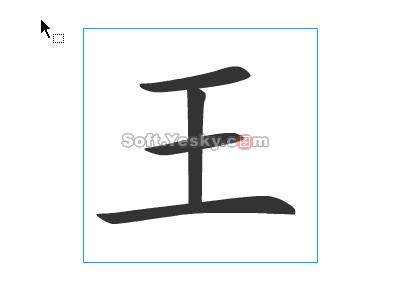 4.单击文字主体的“黑色”部分,将“黑色”部分移动红色边框以外其他位置。按照文字的书写笔画和书写顺序,将每一划分离出来。“王”字的笔画分离后的效果如下图: