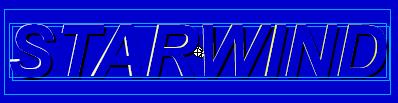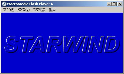 2.新建一图形元件“字符阴影”,在时间轴中选中第1帧插插入一关键帧,从工具箱中选取文本工作,设置字体为“Arial”,大小为72,设置文本颜色为黑色,在工作区中输入文本“STARWIND”,这就是浮雕效果中的阴影部分,效果如图2所示
