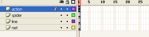 最后一个是空的MC,line_mc,用来画线(蜘蛛丝)。